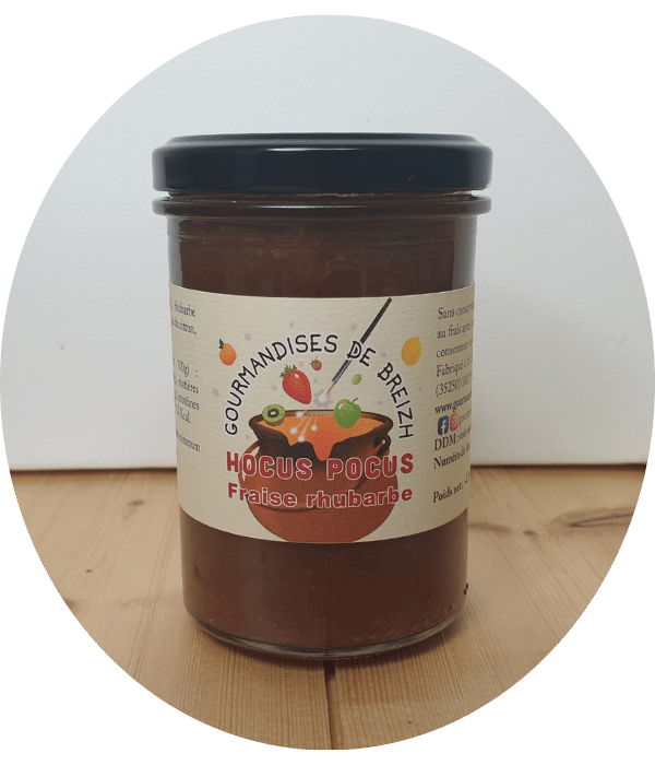 *Ce produit ayant une teneur en sucre inférieure à 55%, on ne peut pas le qualifier de “confiture de rhubarbe et fraise”.